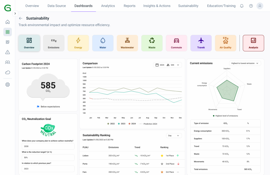 Monitor your CO2 footprint and consumption in real time. Generate ESG reports with auditable data.
